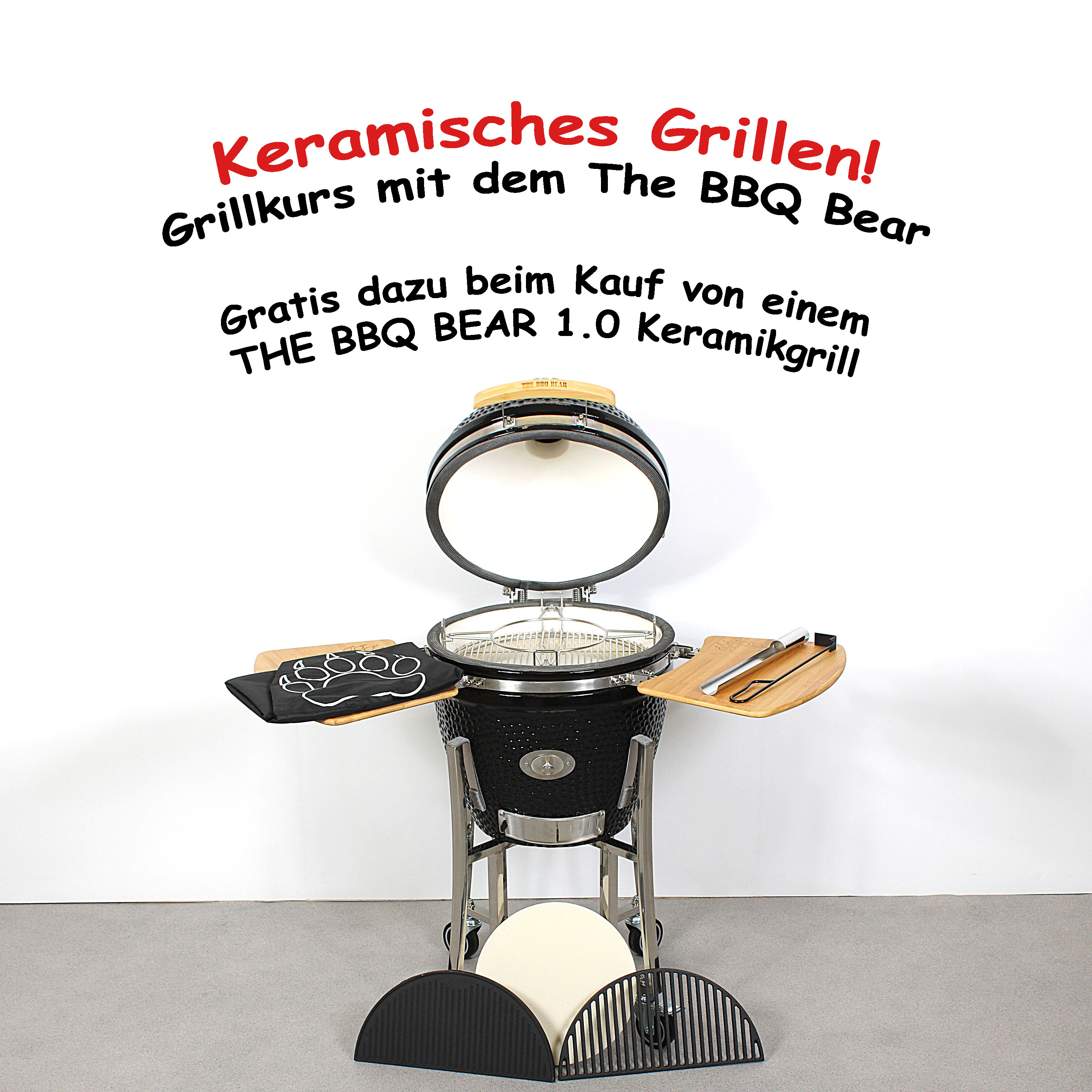 Kaufe Dir jetzt einen THE BBQ BEAR 1.0 Keramikgrill und erhalte dazu einen Gratis-Gutschein vom The BBQ Bear für die Teilnahme am Grillkurs „Grillen mit dem Keramikgrill“. Der Grillkurs kostet ohne Gratis-Gutschein 119 Euro.